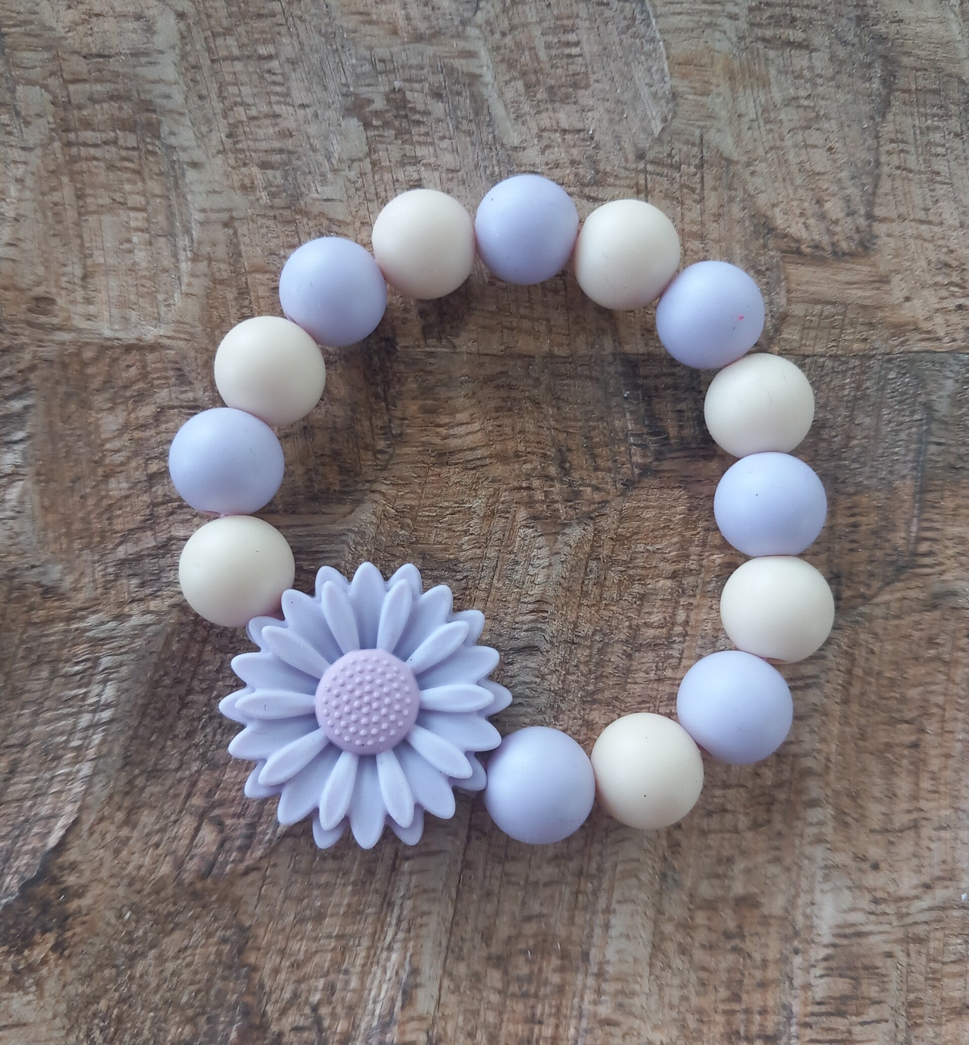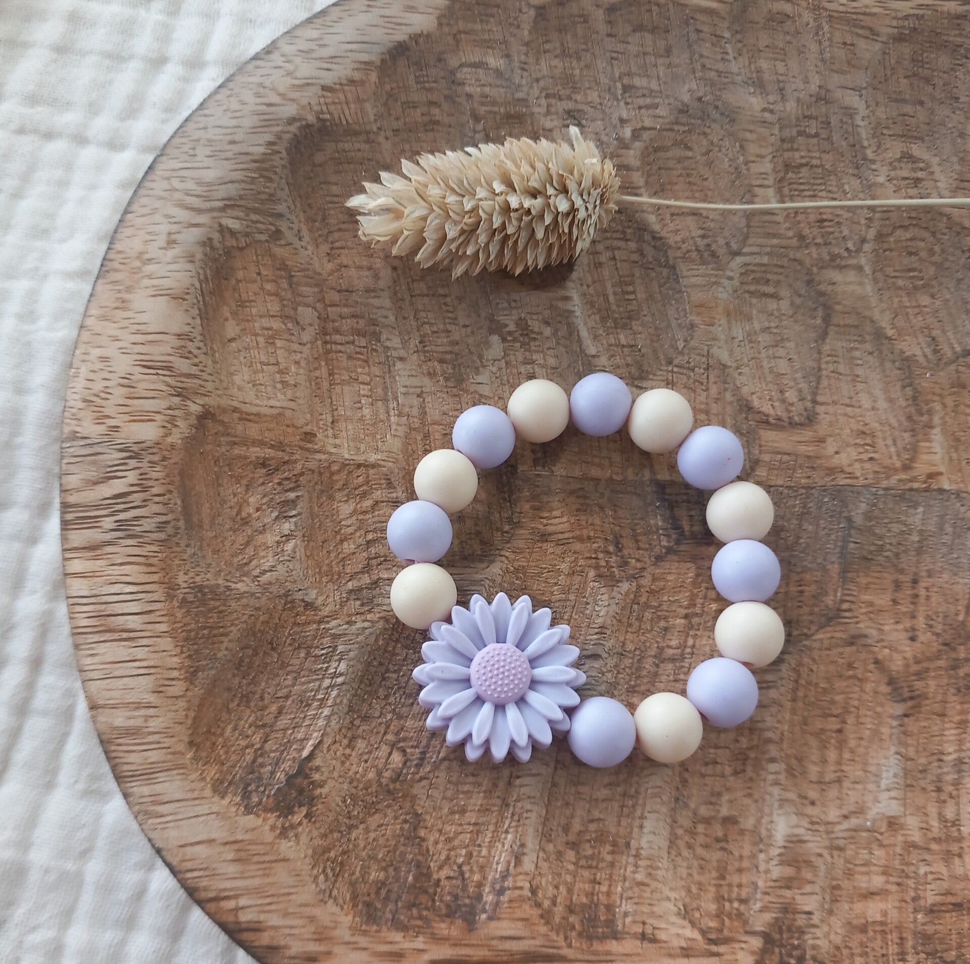 Armband madelief. Gemaakt van siliconen kralen en madelief.