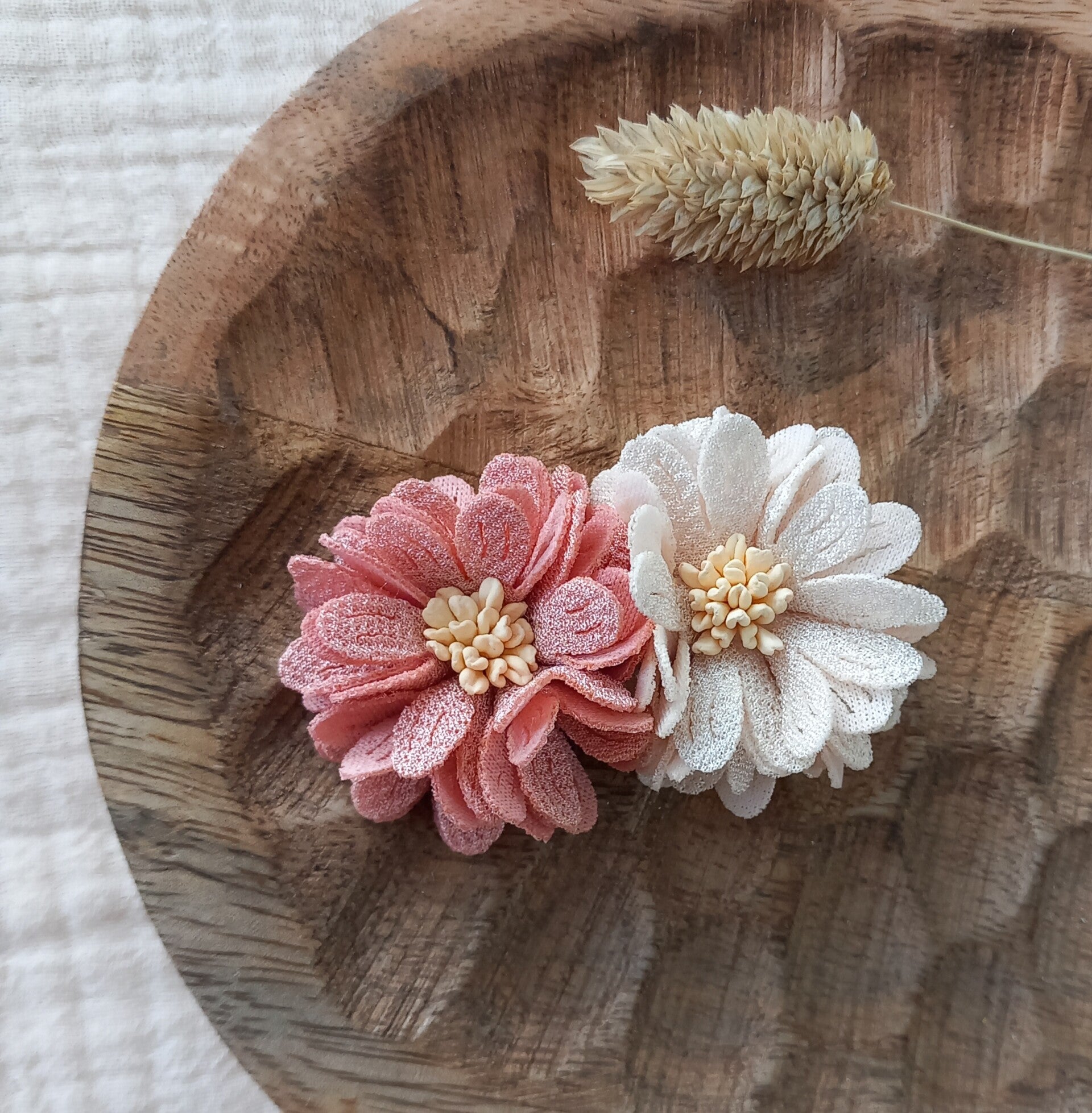 Alligator speldje van 4,5 cm met 2 grote bloemen in het roze en creme. Per stuk.