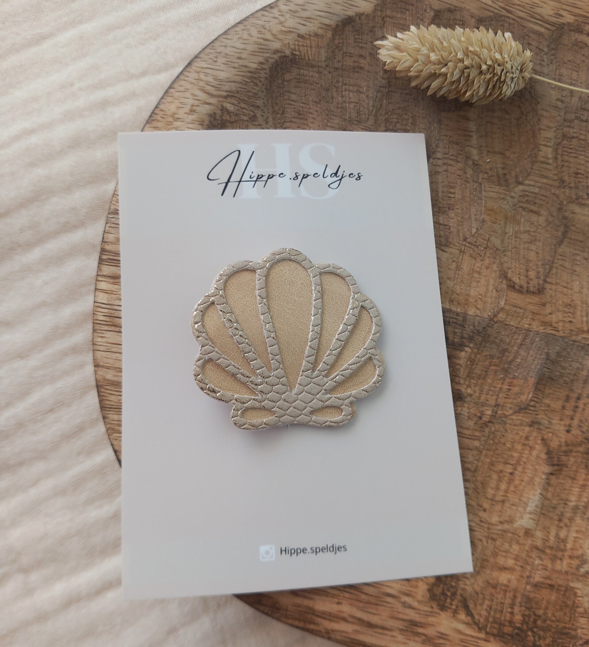 Summer shell bevestigd op een alligator speldje. Zachte naturel tintjes. Ook verkrijgbaar op een antislip speldje.