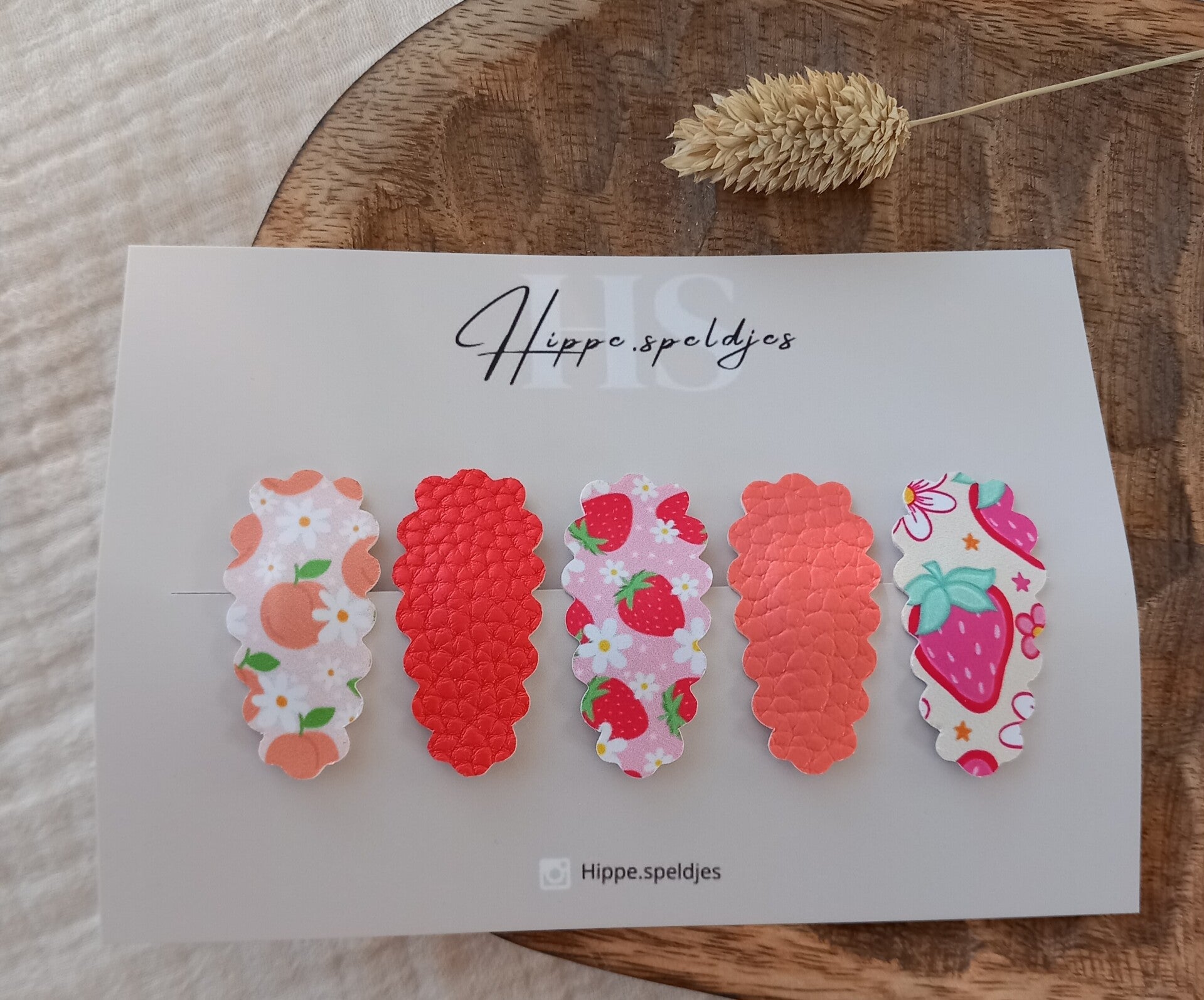 Set summer strawberry. Verkrijgbaar in 4 en 5 cm speldje.