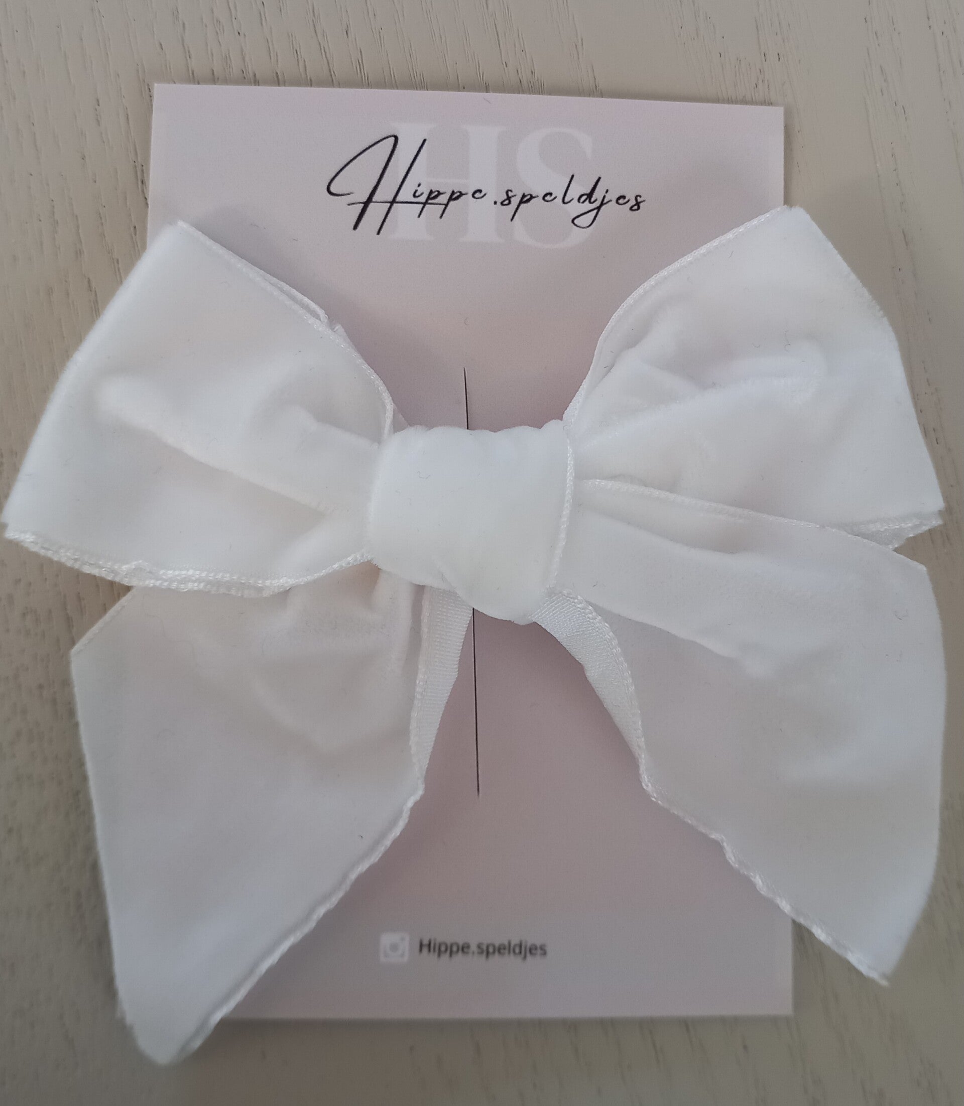 Lieve witte strik. Lekker zacht en speels. Bevestigd op een alligator speldje. Per stuk.