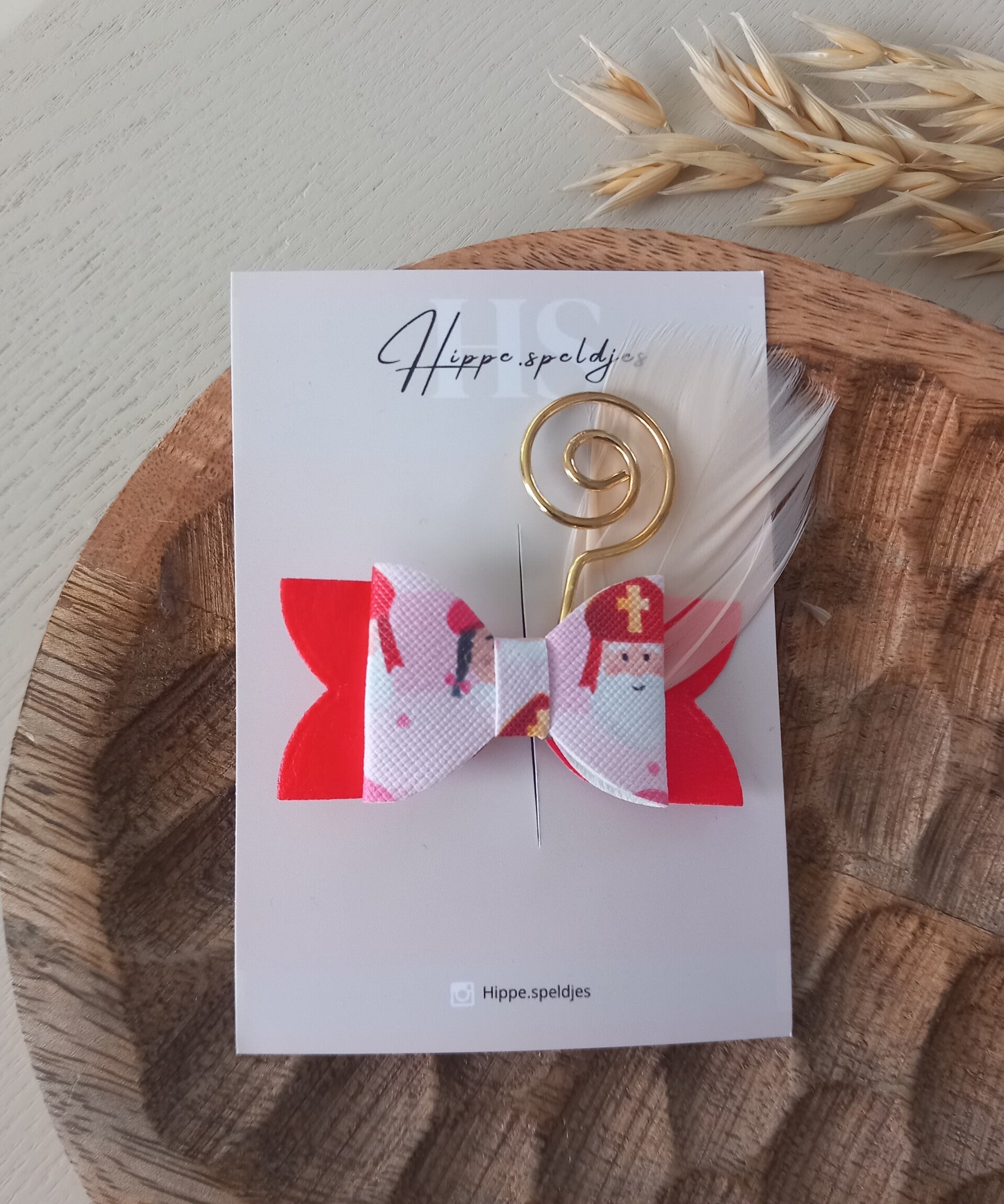 Lieve sinterklaas strik. Bevestigd op een alligator speldje.
