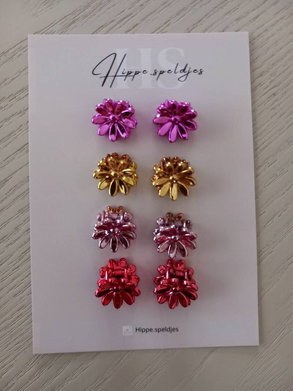 Set van 8 mini bloemen klemmetjes. Maakt de staartjes of knotjes extra leuk.