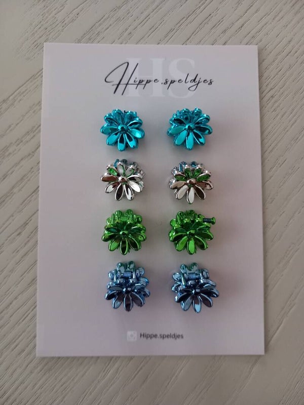 Set van 8 mini bloemen klemmetjes. Maakt de staartjes of knotjes extra leuk.