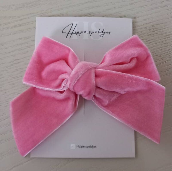 Strik velvet pink. Bevestigd op een alligator speldje.