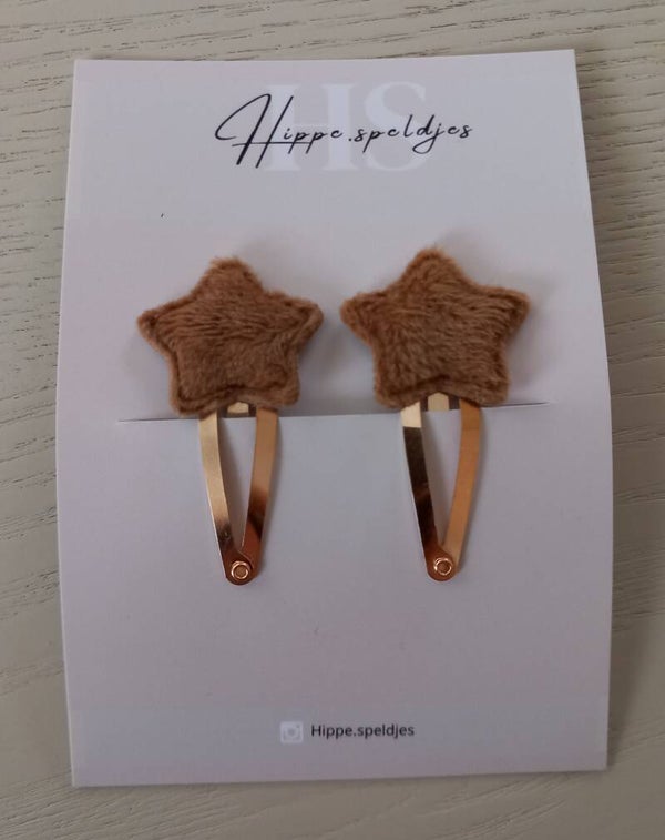 Set fluffy star brown. Set van 2 speldjes. Keuze uit een 3, 4 of 5 cm speldje.